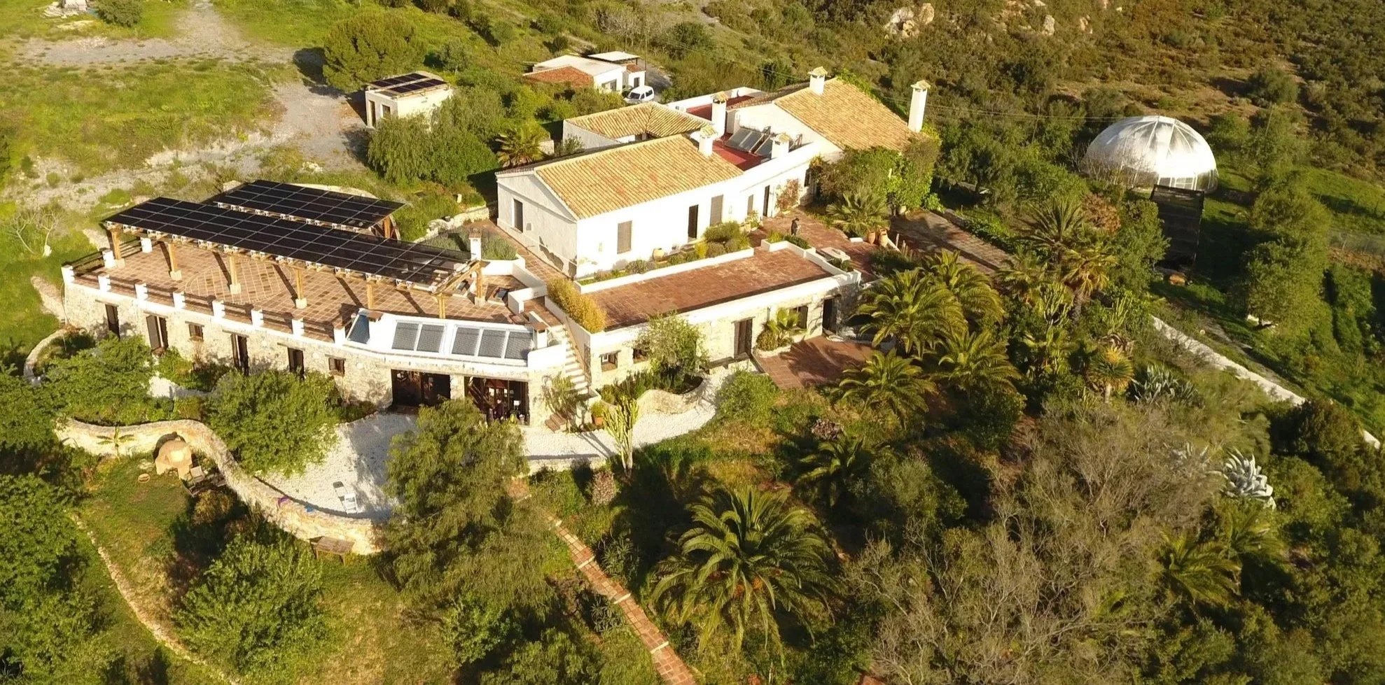 The venue is completely off-grid and powered by renewable energy. In the cooler months, two log-burners warm the communal spaces. In the summer, they are cooled by solar-powered air conditioning. Every aspect of the design is thoughtfully done to conserve natural resources and enhanced by the spectacular beauty of the land.